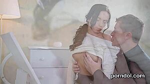 Tiny bookworm feels intense emotions as stepdad fucks her tight pussy deeply