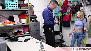hot teen shoplifter scarlett mae caught by loss prevention officer after stealing tv
