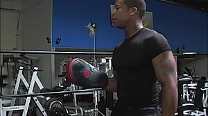 Monsters cock pummels the gay amateur to give him a cum shower in the gym