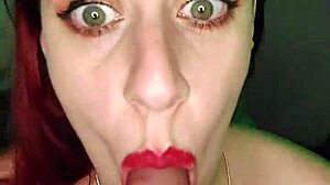 Milf Delivers Perfect Blowjob with Cum Swallowing Close Up!