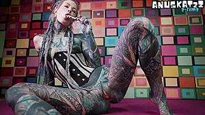 Skinny goth lesbians whip shaved pussies during strap-on anal bdsm