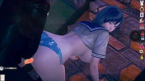 AI girl plays erotic video with cute short black hair big tits JK in real 3D CG game