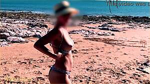 Look at wifey flashing her big tits at the beach!