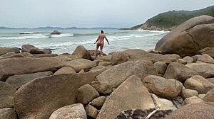 big ass wife twerks thong outdoors on beach