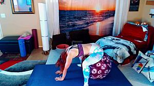 Redhead milf performs hip mobility yoga