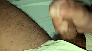 Wife massages penis with tongue. Sucks big dick and swallows cum.