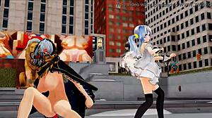 Mmd-Blue Archive Hanako Yuka in Wild Titty Fuck Hentai Action Scene.
