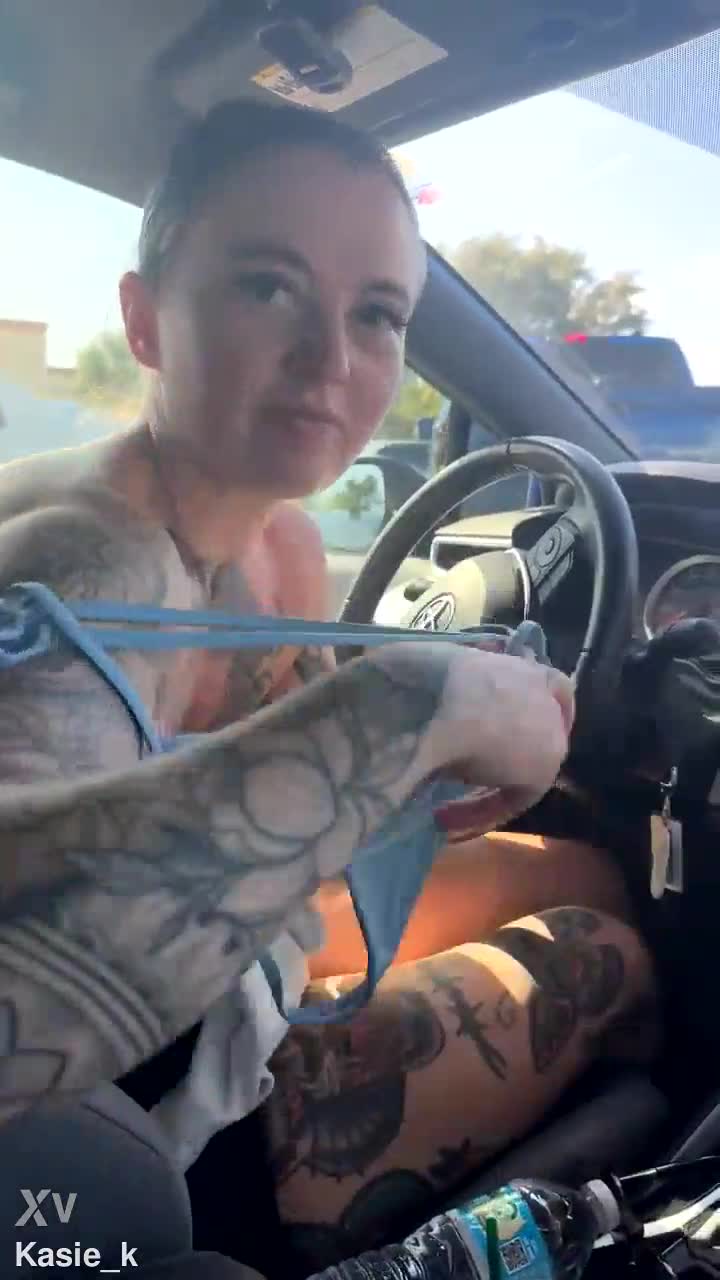 Just a girl fixing her sports bra in the gym parking lot