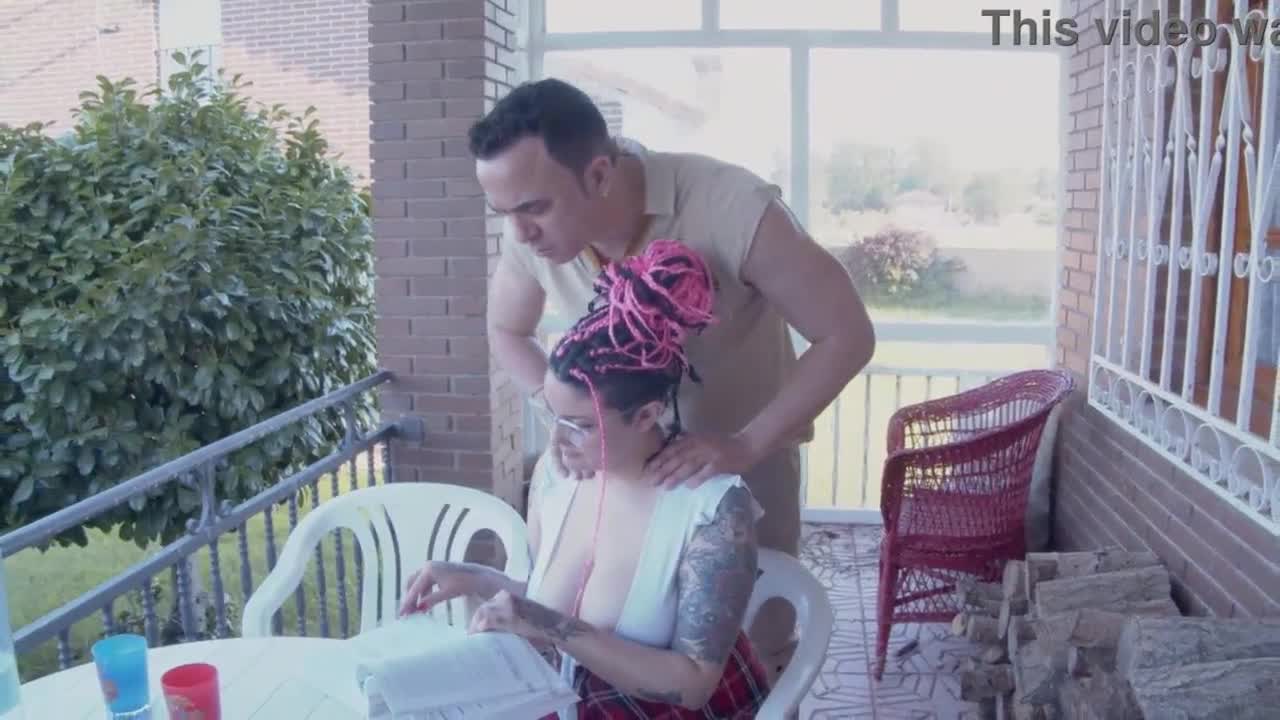 Fucking Tattooed Student with Big Tits on Public Porch - स्पैनिश, झुकी हुई, मॉन्स्टर कॉक