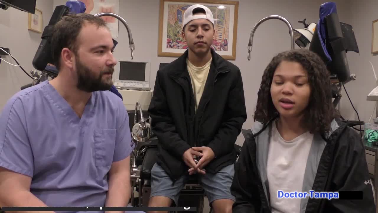 dr tampa checks sisters' first gyno exam with angel santana and aria nicole.