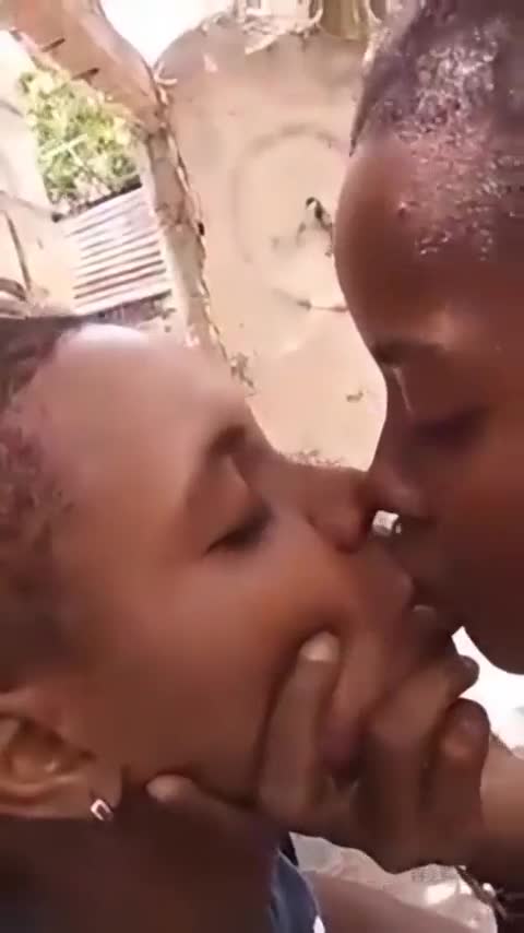 Two liberian lesbians kissing passionately in an unfinished building - आउटडोर, अफ्रीकी, सार्वजनिक