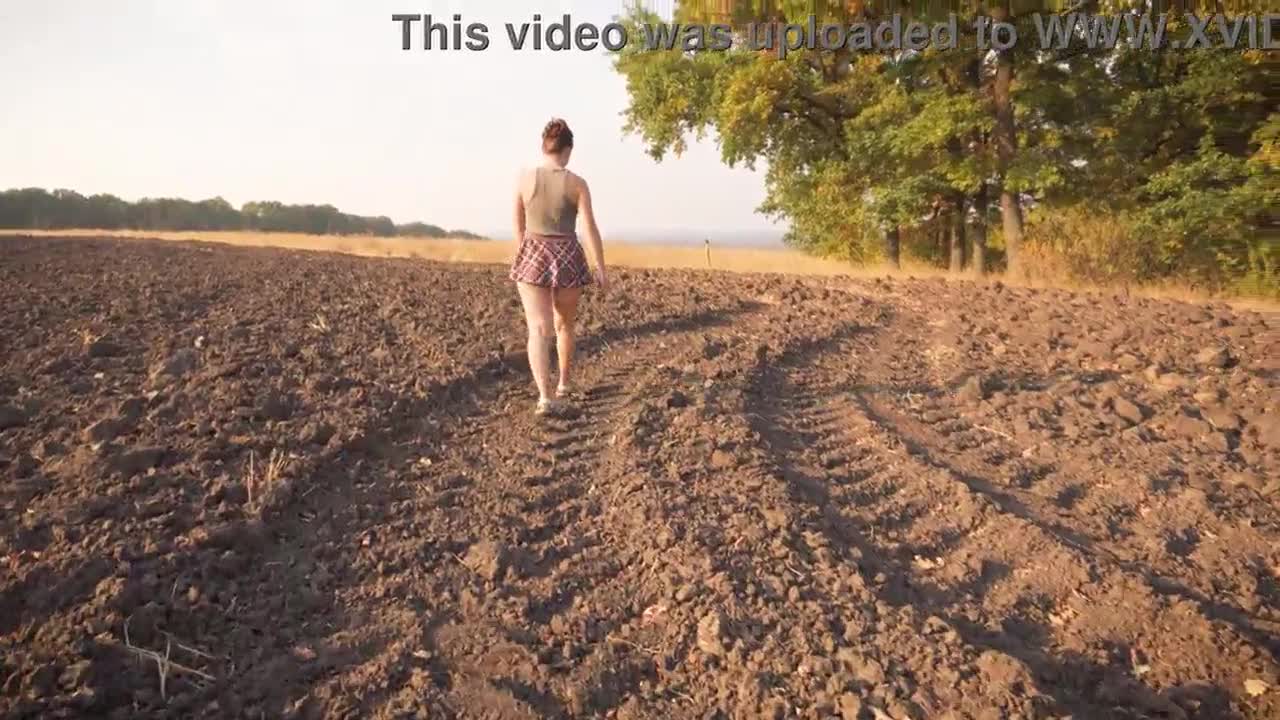 College student daringly skips panties under her skirt outdoors