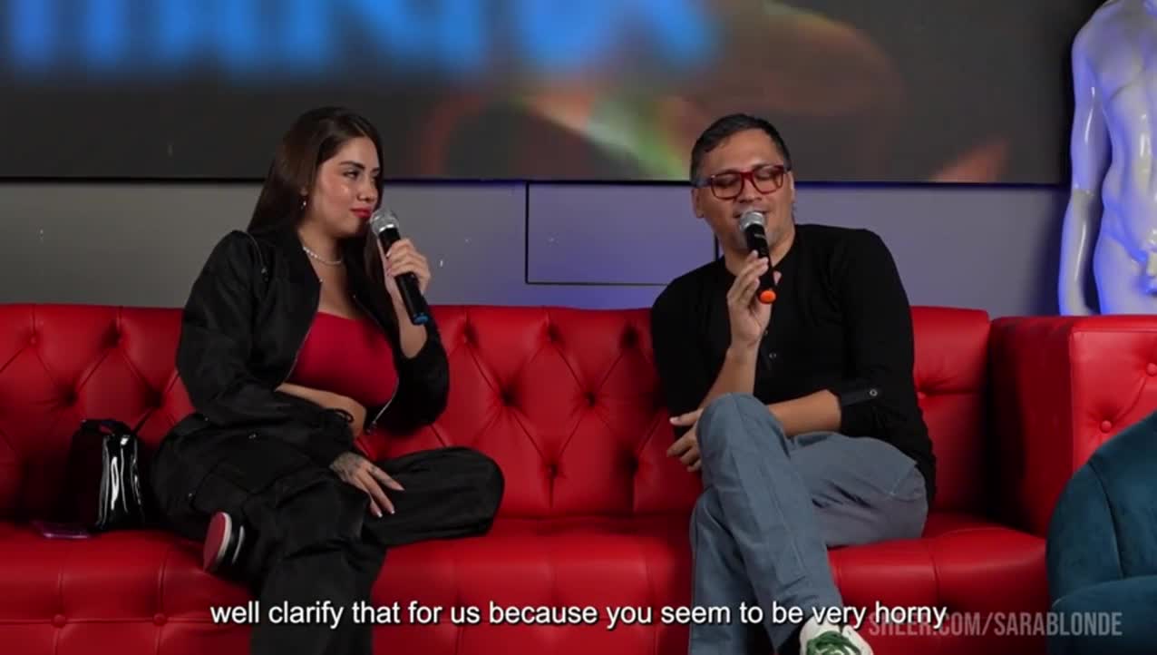 I fuck a big dick fan on live tv show in front of my cuckold boyfriend - sara blonde - पति, गला घोंटना, बड़ा लंड