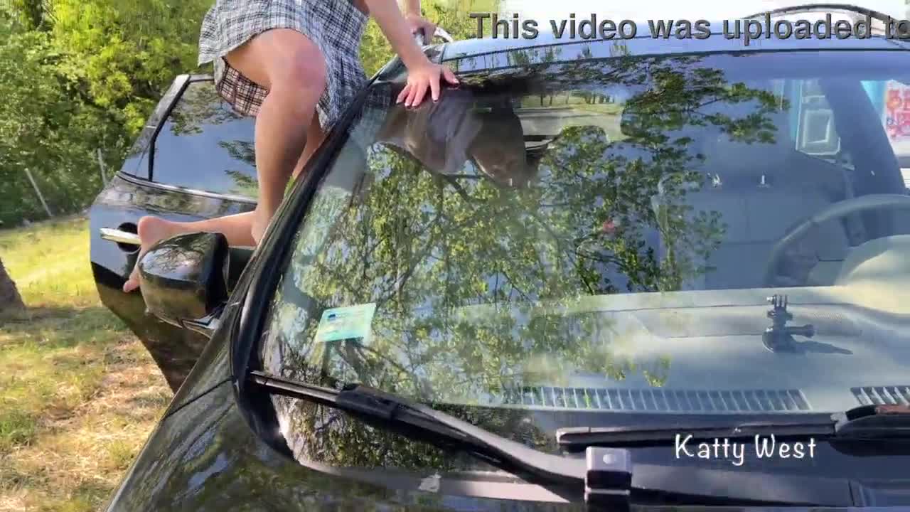 Crazy Girl Squirt Pees Roof Cleans Car Windshield Boldly -