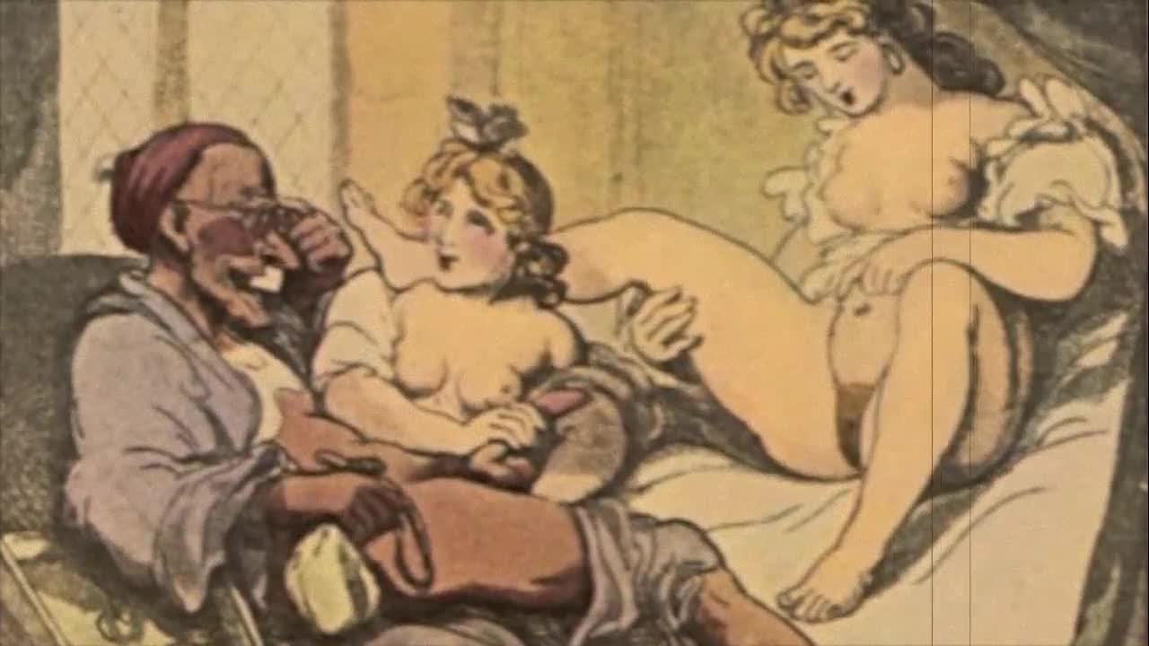Detailed vintage erotic illustration with antique cartoon styles