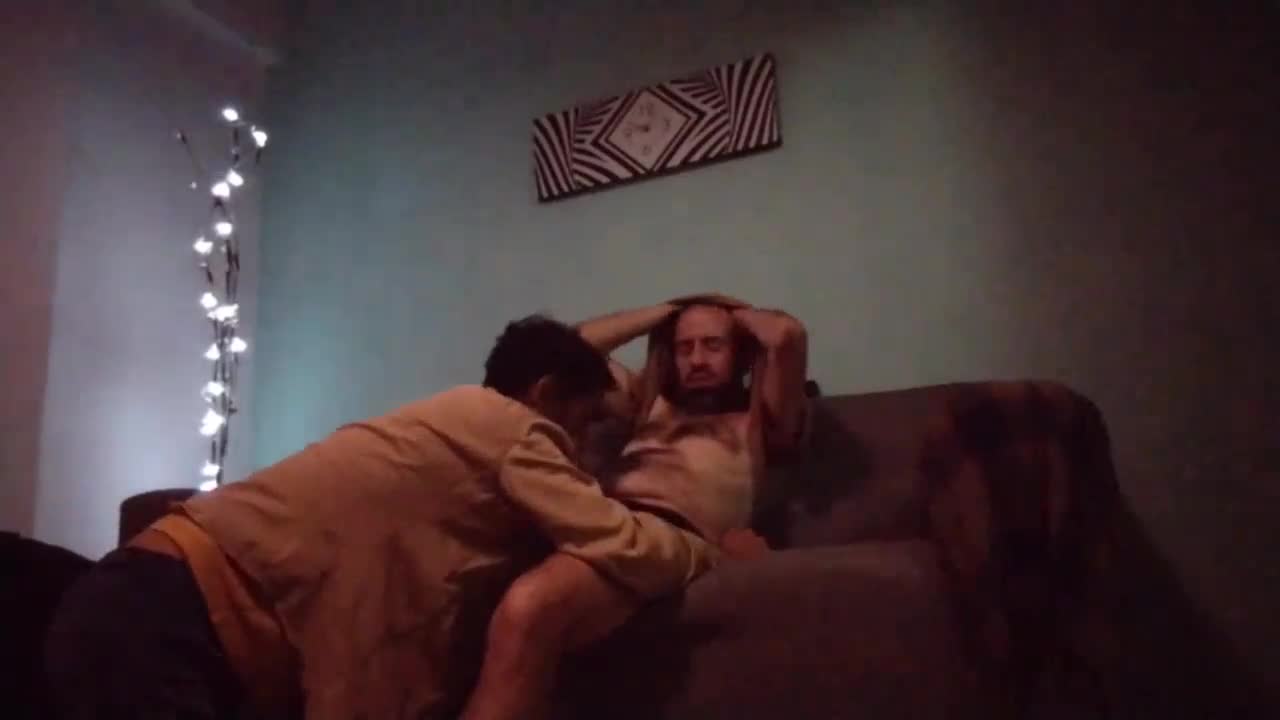 Un masaje de pies y chupada de verga a mi hijastro caliente